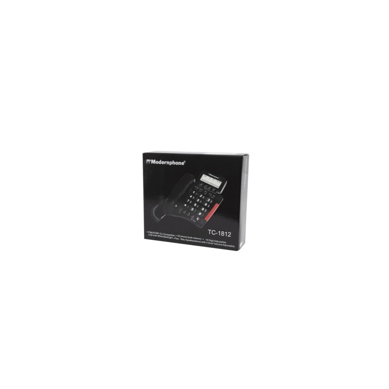MODERPHONE TELEFONOALAMBRICO TC18* TELEFONO ALAMBRICO UNILINEA.* ALTAVOZ* IDENTIDICADOR DE LLAMADAS* DIRECTORIO TELEFONICO 25 NUMEROSY 12 MEMORIAS RAPIDAS,* INDICADORA DE TIMBRADO.* VOLUMEN AJUSTABLE.SEGMENTO: HOGAR